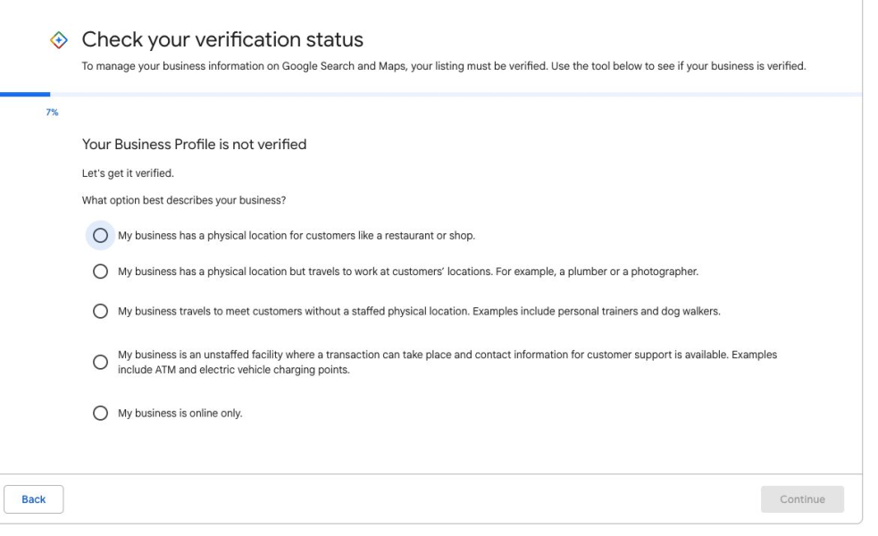 Choosing the “online only” tag will lead to an immediate or delayed suspension. Since the goal is to show up on Maps, you must prove you serve a specific geographic area. But many people click this thinking it refers to their digital presence.